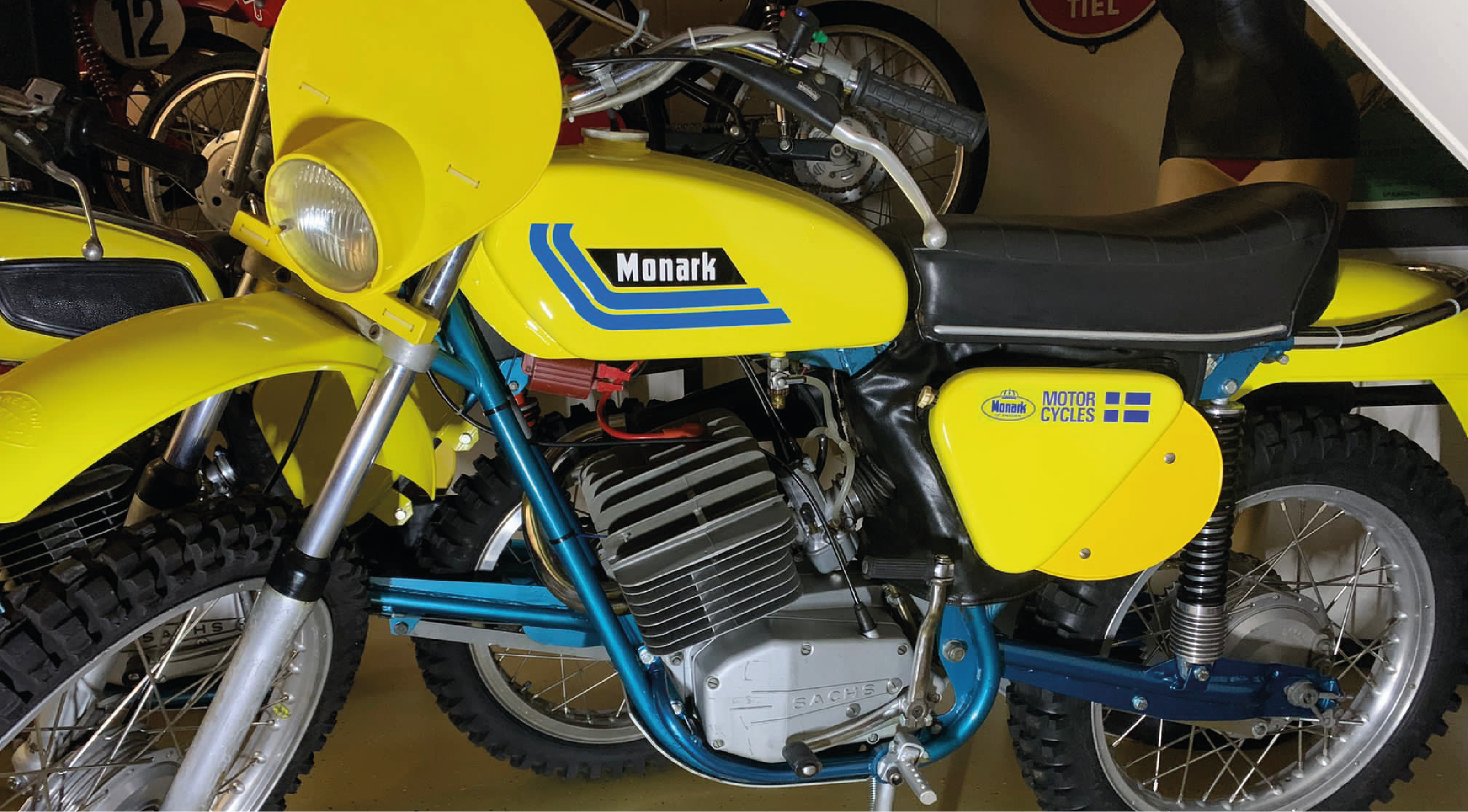Wij hebben deze monark mogen voorzien van original look belettering zoals ouds her geleverd en we hebben nog een mooie old school benzinepomp mogen voorzien van het Monark logo.
