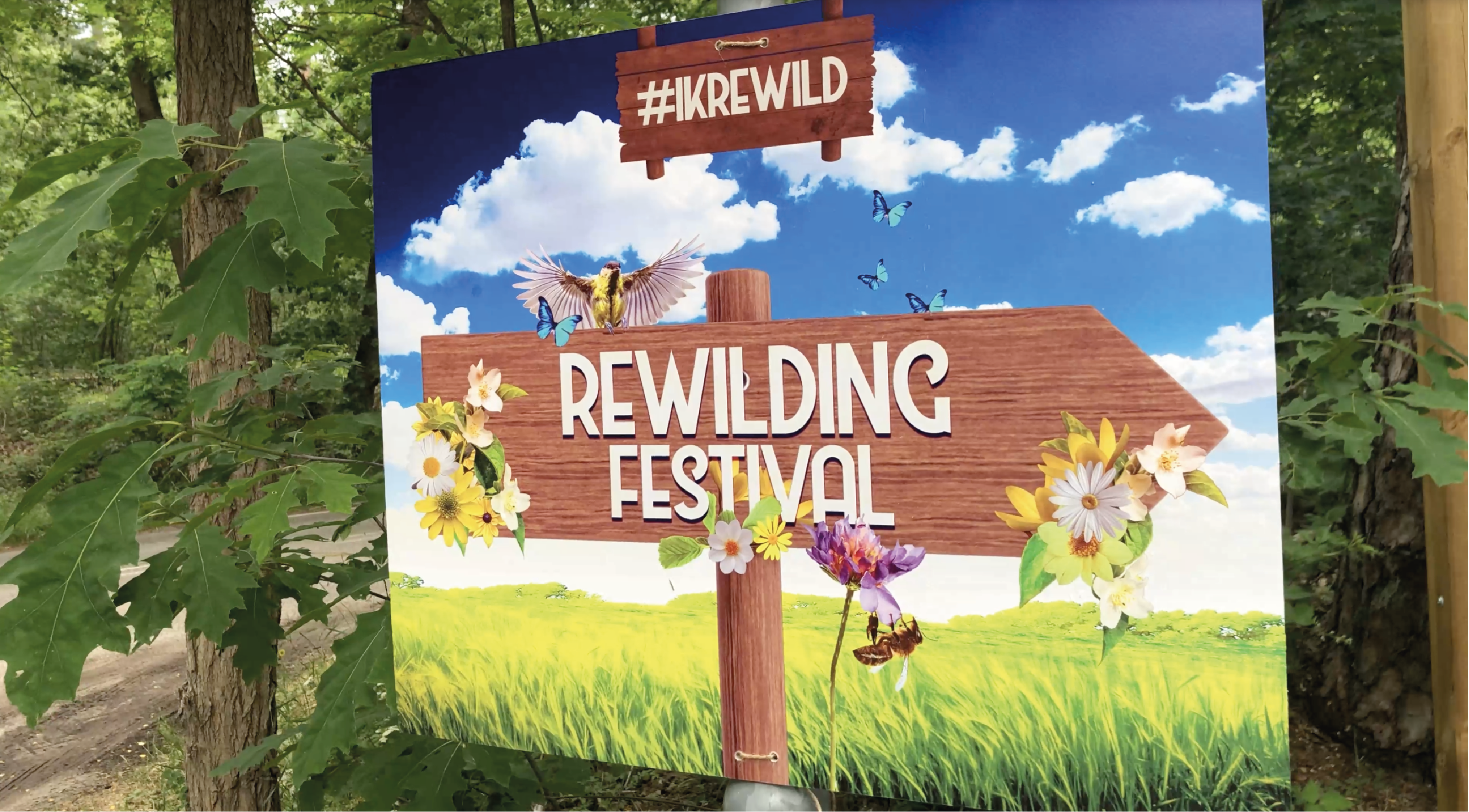 Tijdens het start-up festival van Rewilding Festival hebben we de bewegwijzing verzorgd & het bijbehorende plaatmateriaal.