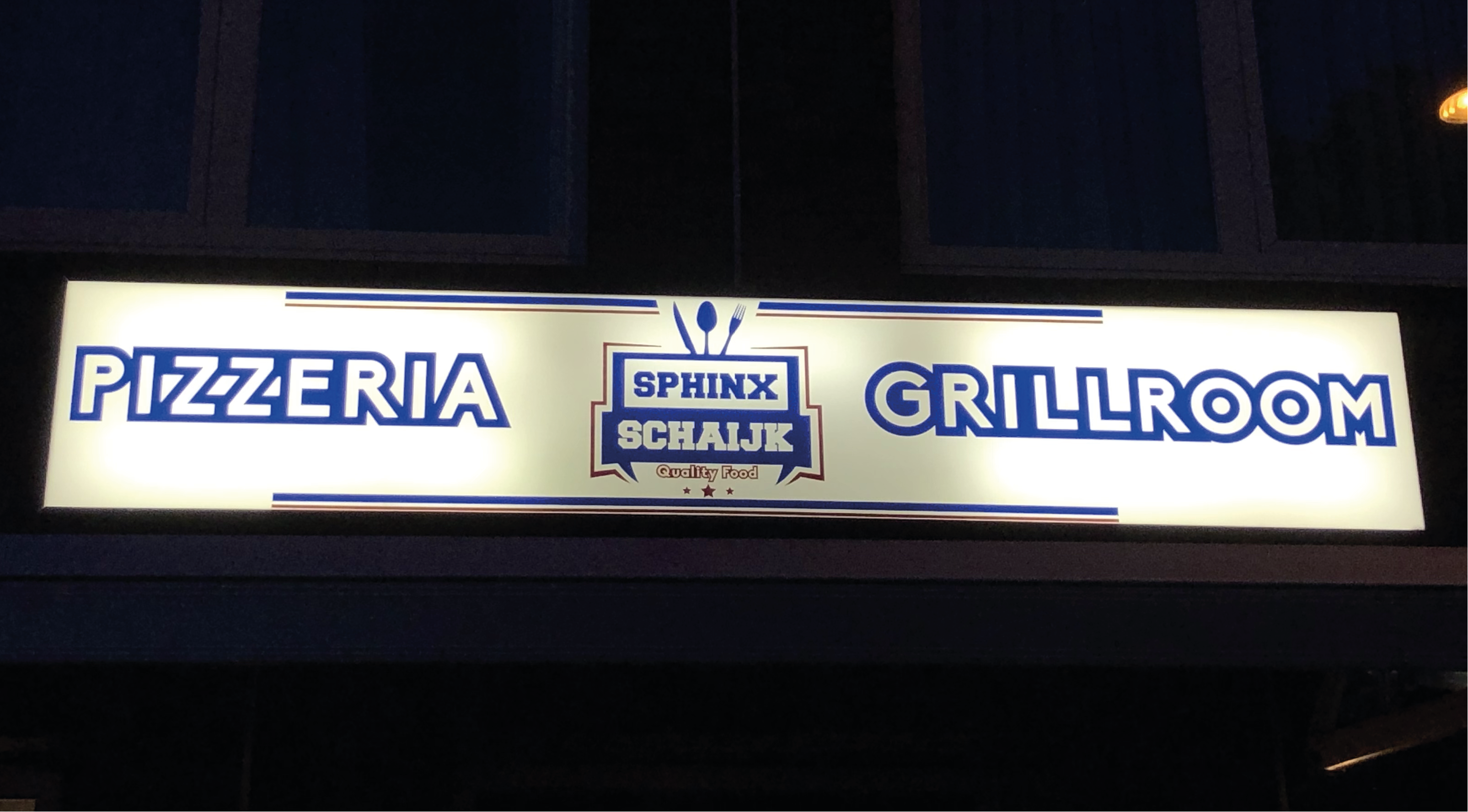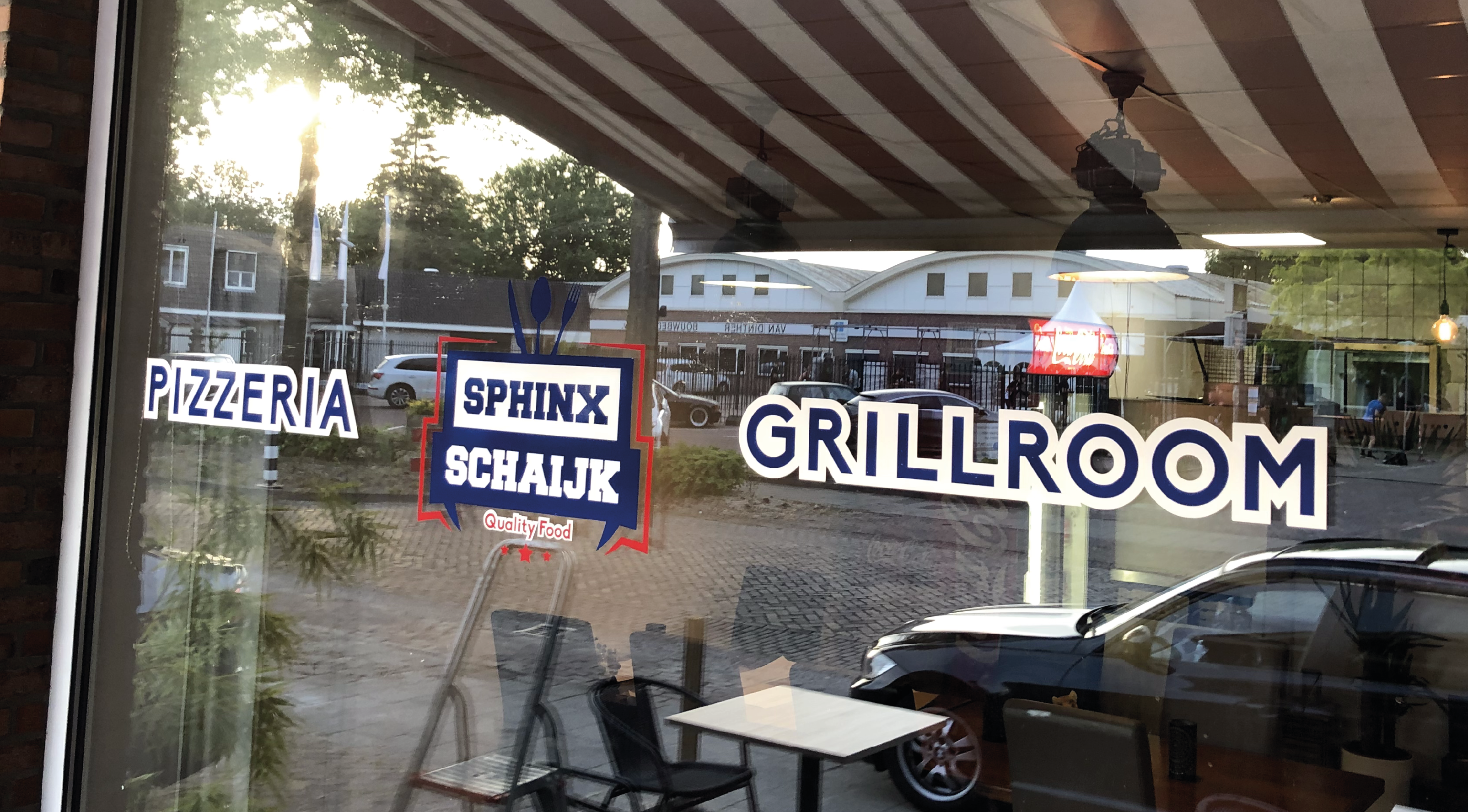 Bij Sphinx Schaijk hebben we de raam & lichtbak voorzien van gekleurde snijfolie met overlay, dit betekent dat de verschillende kleuren snijfolie over elkaar worden gemonteerd om tot het gewilde resultaat te komen.